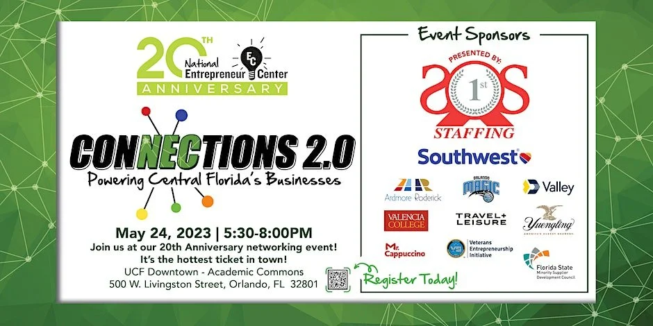Join NAWBO Orlando and other NEC partners at the National Entrepreneur Center’s 20th Anniversary Networking event.